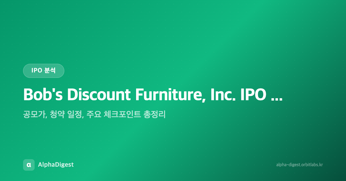 Bob's Discount Furniture, Inc. IPO 분석 — 공모가, 청약 일정, 주요 체크포인트 총정리
