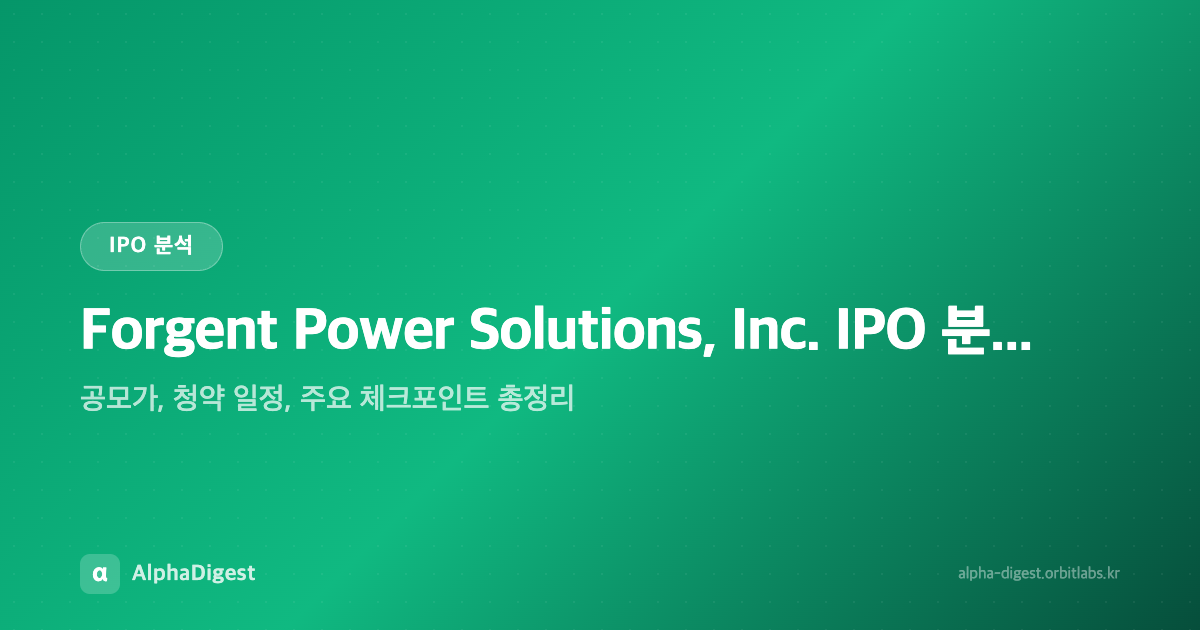Forgent Power Solutions, Inc. IPO 분석 — 공모가, 청약 일정, 주요 체크포인트 총정리