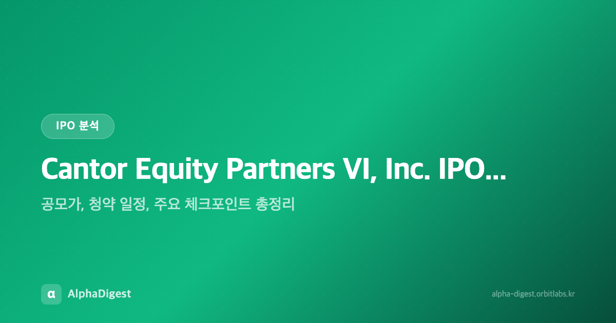 Cantor Equity Partners VI, Inc. IPO 분석 — 공모가, 청약 일정, 주요 체크포인트 총정리