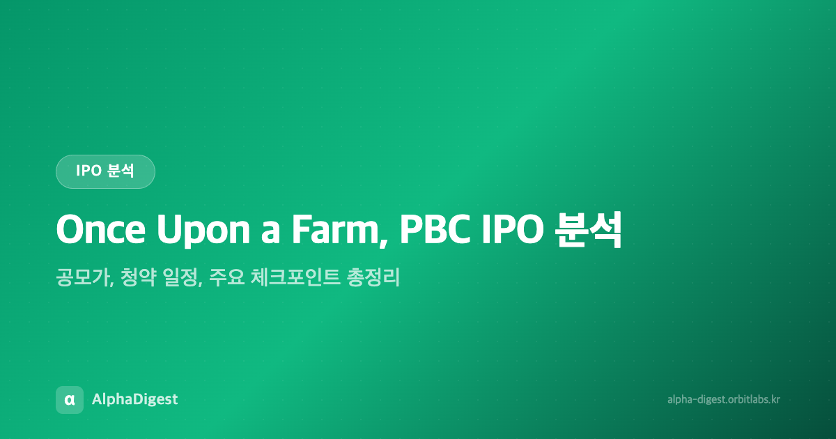 Once Upon a Farm, PBC IPO 분석 — 공모가, 청약 일정, 주요 체크포인트 총정리
