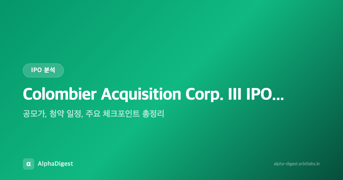 Colombier Acquisition Corp. III IPO 분석 — 공모가, 청약 일정, 주요 체크포인트 총정리