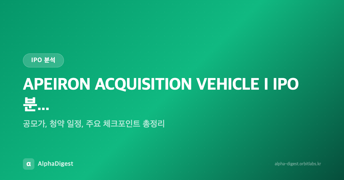 APEIRON ACQUISITION VEHICLE I IPO 분석 — 공모가, 청약 일정, 주요 체크포인트 총정리