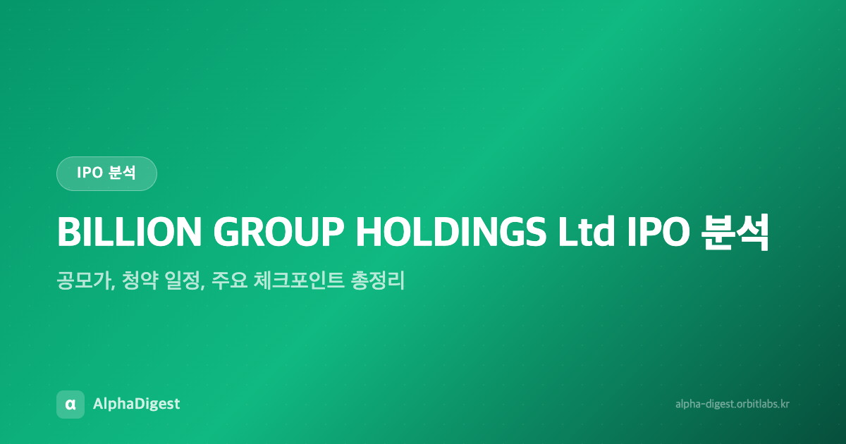 BILLION GROUP HOLDINGS Ltd IPO 분석 — 공모가, 청약 일정, 주요 체크포인트 총정리