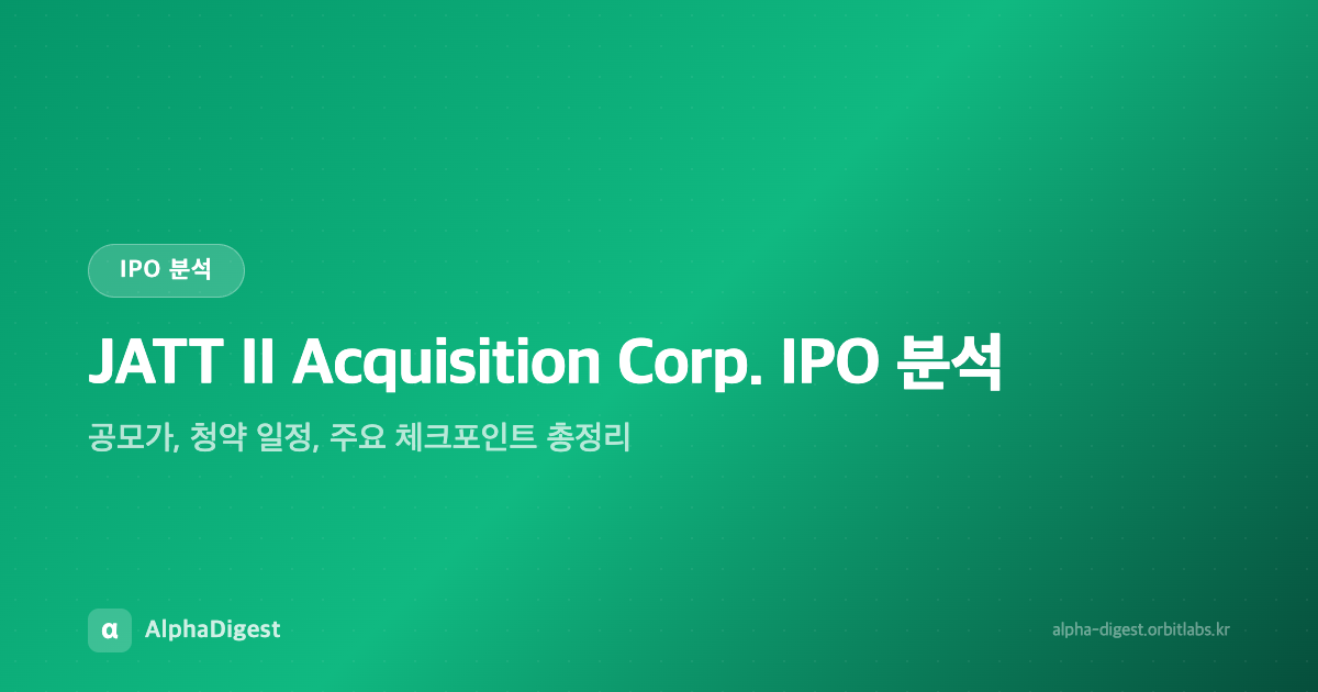 JATT II Acquisition Corp. IPO 분석 — 공모가, 청약 일정, 주요 체크포인트 총정리