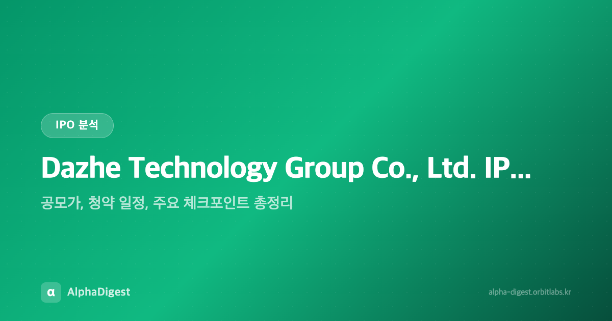 Dazhe Technology Group Co., Ltd. IPO 분석 — 공모가, 청약 일정, 주요 체크포인트 총정리
