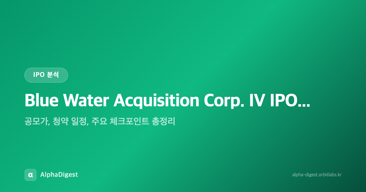 Blue Water Acquisition Corp. IV IPO 분석 — 공모가, 청약 일정, 주요 체크포인트 총정리