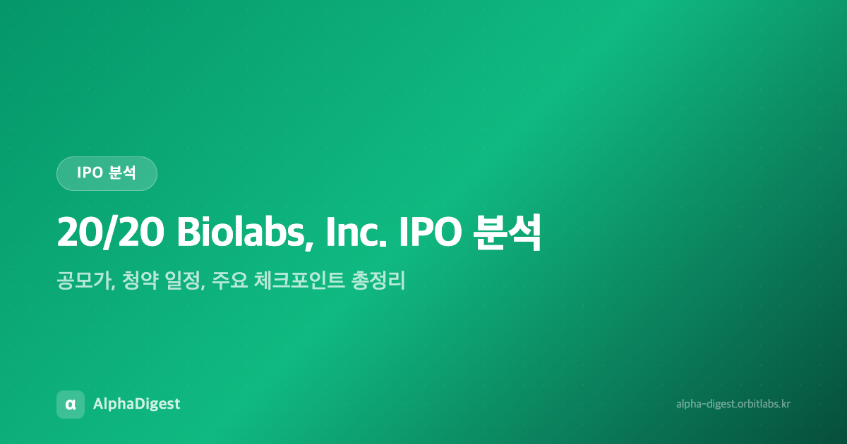 20/20 Biolabs, Inc. IPO 분석 — 공모가, 청약 일정, 주요 체크포인트 총정리