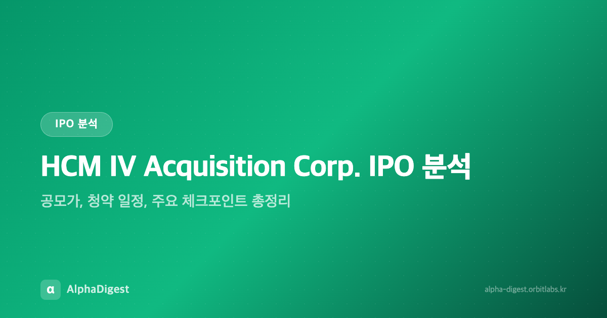 HCM IV Acquisition Corp. IPO 분석 — 공모가, 청약 일정, 주요 체크포인트 총정리