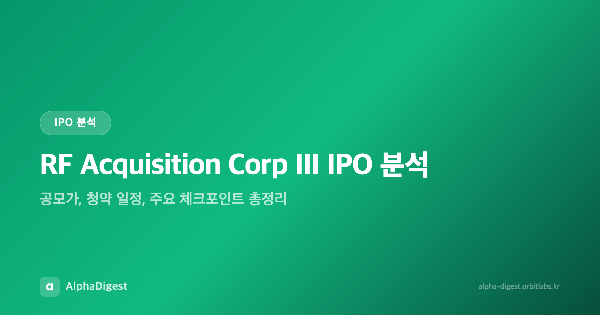 RF Acquisition Corp III IPO 분석 — 공모가, 청약 일정, 주요 체크포인트 총정리