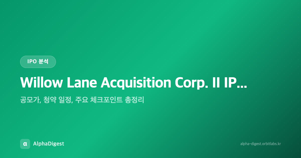 Willow Lane Acquisition Corp. II IPO 분석 — 공모가, 청약 일정, 주요 체크포인트 총정리