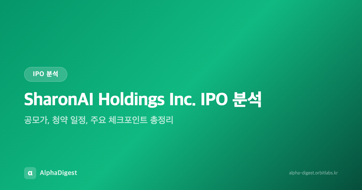 SharonAI Holdings Inc. IPO 분석 — 공모가, 청약 일정, 주요 체크포인트 총정리